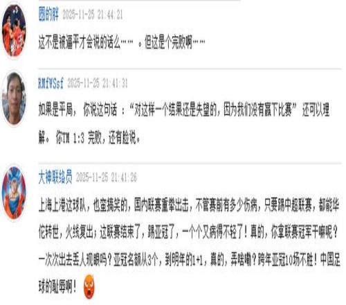 穆斯卡特这话连球迷都看不下去了,直接在评论区内打脸。有球迷说道:这不是被逼平才会说的话么……,但这是个完败啊……。还有网友毫不客气地表示,如果是平局你可以说这种话,但你是1比3完败啊,还有脸说。